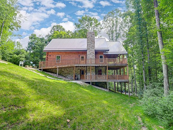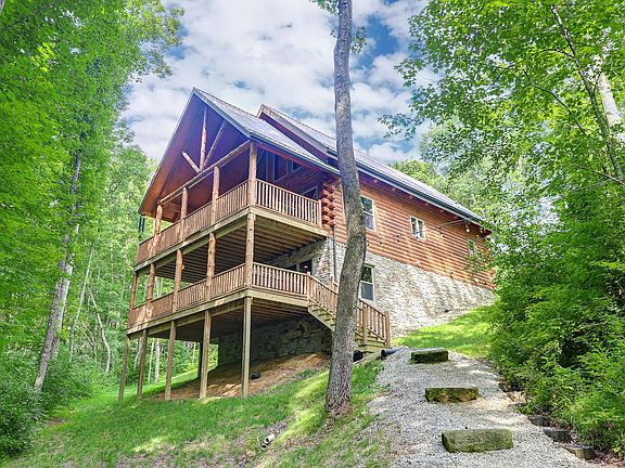 Step inside, and you'll quickly see why this cabin is named ''Almost Heaven'' The 2-story great room, with wall of windows toward a gorgeous wooded ravine, features Amish craftmenship. This is a 3-bedroom, 2 bath log cabin with three finished levels. The Luxury loft is spacious and has a breath-taking view of the entry level and windows to the ravine. The main floor features a stone gas fireplace, high end furnishings, and a large dining area. The kitchen shines with stainless appliances, granite counters, and an elevated breakfast bar with live edge wooden top. The finished lower level recreation room will make this cabin a favorite for many. It has a walk-out to the lower deck with hot tub. The upper deck off the entry level has log patio furniture and a gas grill. Must see.