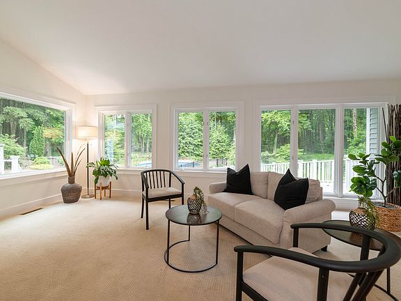 A Thoughtfully Designed Interior: The heart of the home is the living room, anchored by a stunning fireplace and surrounded by oversized windows that overlook the enormous deck and heated in-ground
