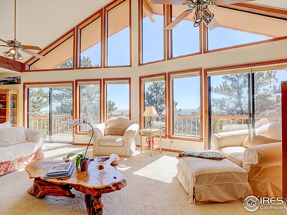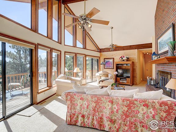 Welcome home to this raised ranch-style home with breathtaking AMAZING views on almost 1 1/2 acres, located in the coveted Crestview Estates neighborhood, just North of Boulder. The open floor plan enjoys soaring ceilings and large windows allowing gorgeous natural light to flow throughout the family room/kitchen with a cozy wood-burning stone fireplace for winter evenings. Unbelievable foothills views to enjoy sunrises and moonrises as well as the wildlife that can include turkeys, deer and elk. The kitchen offers views to the west and the north, newer appliances (the oven has never been used) and an expansive island that opens to dining room and family room. Enjoy 2 beds up and downstairs you will find a walk-out family room w/fireplace, bedroom, bath and bonus room. The 2-car garage offers an additional work bench for your hobbies. HVAC and water heater are all new within the last few years. Biking and hiking trails are easily accessible from this home and for the golfer, Lake Valley Golf Club is a short five miles away. The Greenbriar Inn is just a stroll down the street to enjoy happy hour, dinner or brunch. Great opportunity to remodel and update this house, enjoy being close to Boulder with quiet serenity and start creating memories to last a lifetime. Home being sold "as is."