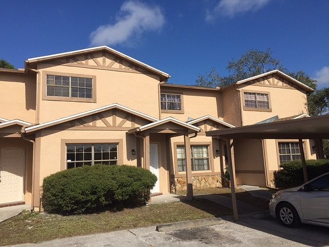 Amazing 2 Bedroom Town home, freshly painted, meticulously clean. Light and bright, plenty space for your furniture, completely updated in Wood Trail Village, near Old CR 54, surrounded by trees and close to the main shopping areas: Walmart, Publix, Ross, Marshalls, Wells Fargo, Bank of America. Ground floor features include ceramic tile in living room, kitchen, 1/2 bathroom. Separate area for a dining room with wood flooring , leading to screened Florida room with washer and dryer hook up. The kitchen has a dishwasher, stove, large fridge, pantry and plenty cabinet space. Carpeted stairs takes you to the 2 bedrooms with new carpeting on the second floor, Master bedroom can fit king size bedroom set with plenty of closet space. Shared bathroom with a double vanity area and closet. One look and you will want to move right in. Rent includes lawn maintenance, basic cable, trash and outdoor lighting, external building insurance. There are 2 assigned parking spaces, one with a car port. . Monthly Rental includes trash, basic cable, lawn maintenance, outdoor lighting.