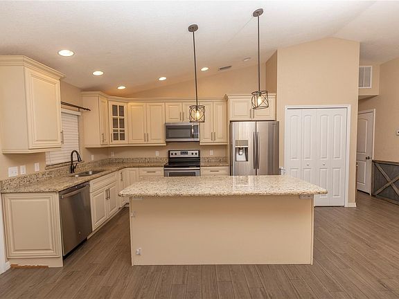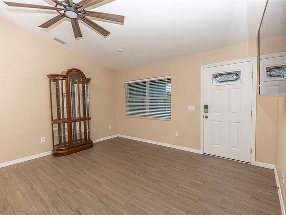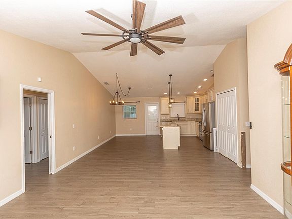 Welcome to your Florida getaway. This three bedroom, two bath home offers a spacious split floor plan. The kitchen has been upgraded with granite countertops, stainless steel appliances, a large pantry, and an eat at island. The bathrooms also have granite countertops with the master bathroom having a double vanity. Enjoy the inside laundry room, and plenty of closet space in this gem. With a security system in place, and a privacy fence around the whole back yard you can enjoy peaceful living. This home has solar panels equipped that are integrated into the home. The water and boat ramp are at the end of the street, ready for you to bring your boat on down. Come take a look today and get ready to pack your bags.