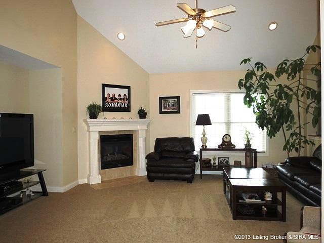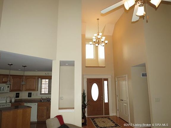 Beautiful KNOBS setting. Backyard views are stellar! Enjoy sunsets from the covered patio and deep flat backyard. You will find a wide open floorplan here. 1st FLOOR MASTER w/ 3 brs upstairs. The foyer and great room have a soaring 16ft ceiling (smooth finish) & oversized windows allow an abundance of natural light! FORMAL DINING. The kitchen has a work island w/ pendant lighting, plenty of counter space & HUGE WALK-IN PANTRY. The garage is oversized & there's a terrific MUDROOM! Finished basement has an add'l bath, family rm, plus storage. There are 2 HVAC systems, including a separate one just for upstairs. (There's also walk-in unfinished attic space for yet more storage.) The bonus room (br #4) upstairs is quite roomy, w/ a closet in the hallway just outside the door. This home is located in a small neighborhood, w/spacious lots in desirable KNOBS location. About 20 min to Louisville. 1yr HMS warranty. Sq ftg rm sizes approx.\n\nInformation Deemed Reliable But Not Guaranteed. Information provided by the Southern Indiana REALTORS® Association, Inc. © 2010 SIRA Multiple Listing Service. All rights reserved. Brokered And Advertised By: Schuler Bauer Real Estate Services ERA Powered [COR] Listing Agent: Patty Rojan