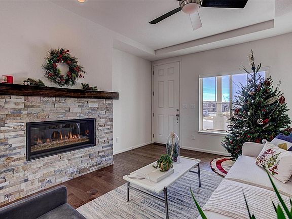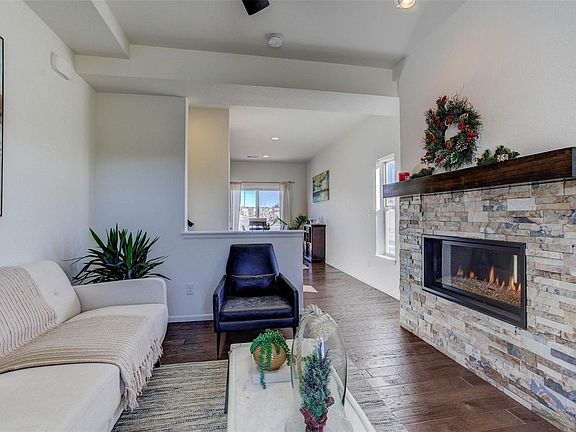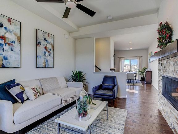 Beautiful home in the desirable neighborhood of Banning Lewis Ranch with 3 bedrooms, 3 baths and upstairs loft/bonus area. Open layout with lots of windows, natural light, and mountain views from upstairs. More updates than you can count, including wide-plank hardwood floors, tall knotty alder cabinets throughout, stainless steel appliances, two fireplaces, granite counters throughout, and oversized mud area leading to the drywalled/insulated garage. Relax in the spacious master suite with fireplace, walk-in closet and luxurious bath with extended cabinets, granite counters, upgraded fixtures and oversized spa shower. The upstairs loft provides an additional flex space and can be used as an office, playroom or media room. Entertain in the professionally landscaped backyard with brick paver patio and no houses/neighbors behind or on the side. This scenic community features amazing views, tree-lined streets, community rec center, parks, trails and top-rated schools.