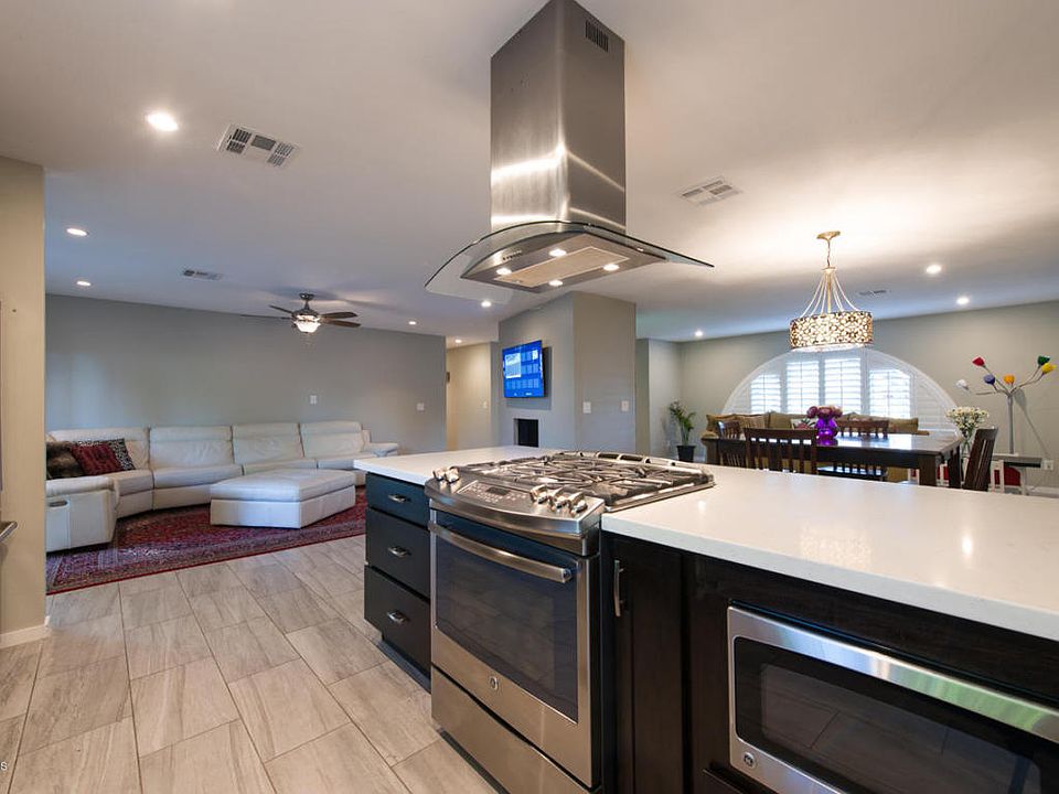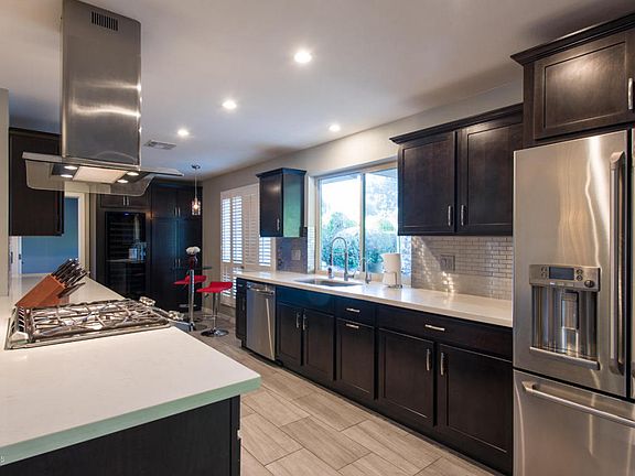 Perfect 100% Full Remodel in McCormick Ranch! Everything was just completed with high quality finishes. Modern, warm, and luxurious feel. Wide open floor plan perfect for entertaining! Beautiful custom kitchen set with quartz tops and stainless steel appliances and backsplash. Gas cooking and built in wine refrigerator. Tile throughout this entire home. Gorgeous Granite Covered 2 way fireplace! New EVERYTHING - You name it - it's been done on the inside! This RARE 4 bedroom, 2 bath home has a gorgeous yard with diving pool and sits on a perfect North/South exposure lot and is right next to the community park. This McCormick Ranch home simply will not last long. Come and Get It!