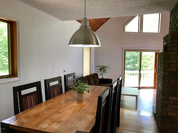 If you're looking for a private, wooded retreat, this awesome A-frame home nestled on 20 acres might be the perfect place to call home. As you enter the property from the paved turn-around drive, nature & peaceful seclusion await. Inside the home, you'll find an open floor plan, soaring ceilings, ample windows, cozy brick fireplaces, spacious kitchen, master suite loft with terrace, huge wrap around deck & more. Updates include new energy efficient furnace, tankless water heater, back-up generator, carpet, wood style floor & fresh paint. There's a heated, insulated garage along with a storage shed & lots of yard space for outdoor activities. Nature walks on the property lead to Beaver Dam Creek, where you'll likely see deer, fish, turkeys & other amazing wildlife. Just 20 minutes to GR.