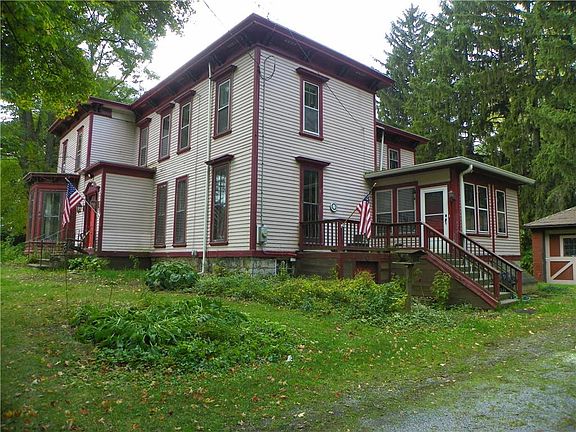 A HISTORIC HOUSE, FOUR STORY BARN, A DETACHED GARAGE AND A CHICKEN COOP FOR THIS KIND OF MONEY? OLD WORLD CHARM AWAITS YOU IN THIS TURN OF THE CENTURY GEM! HARDWOOD FLOORS WELCOME YOU OFF THE ENORMOUS SUN ROOM, INTO THE OVERSIZED COUNTRY KITCHEN WITH AMAZING OAK BUILT-IN CABINETS W/ GLASS DOORS. THE FORMAL DINING ROOM IS A DELIGHTFULLY CLASSIC SPACE WITH AN EXTRAORDINARY GLASS CHANDELIER AND CHAIR RAIL MOLDING THROUGHOUT THIS ROOM. HALF BATH OFF DINING ROOM AND FULL BEDROOM ADJACENT. TURNING THE CORNER USHERS YOU INTO A "GONE WITH THE WIND" OAK BANISTER AND MAJOR SIZED LONG FOYER TO FRONT DOOR! PAST THAT IS AN INCREDIBLY ENORMOUS FIREPLACED FAMILY ROOM WITH RECESSED BOOK SHELVES AND FLOOR TO CEILING WINDOWS WHICH ARE PRESENT IN EVERY ROOM! ON THE WEST SIDE OF THIS SPACIOUS JEWEL IS A TILED FAMILY ROOM WHICH WAS ADDED ON IN THE 1900'S. WAIT TILL YOU SEE WHAT'S UPSTAIRS! A MASTER BEDROOM WITH MASTER BATH, COMPLETE WITH BUILT-IN STORAGE, A UNIQUE CURVED WALL WINDING DOWN THE HALLWAY, ANOTHER LARGE BEDROOM WITH BUILT-INS, ANOTHER FULL BATH AND AMPLE SIZED BEDROOMS! 14.3 WOODED ACRES AND A MASSIVE POND AWAIT ALL YOUR RECREATIONAL PURSUITS! AT THIS PRICE, THIS ONE WON'T LAST!