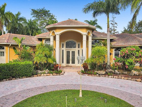Beautifully maintained, 1 acre estate with marble and wood floors, updated kitchen, center island, wood cabinets, granite countertops and stainless-steel appliances. Master suite with sittingarea and room for exercise equipment. 2 walk-in closets, newer wet bar with wine cooler, crown moldings throughout, volume ceilings. 5th bedroom used as office with built-in desk and wallunit, impact sliding doors in family room, 3-ac units, large private yard on corner cul-de-sac with new oversized gazebo, new heated, saltwater resort style pool with waterfall, fully fenced yard. and much more.