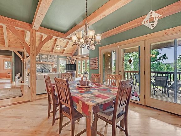 Charming Mountain Retreat on 40 Acres in the Gated Community of Signal Mountain Nestled in Beulah Valley and surrounded by towering pine trees, this beautiful three-bedroom, two-bath home offers the perfect blend of rustic charm and modern comfort. This property provides seclusion along with breathtaking views of Greenhorn Mountain and surrounding canyons. Step inside from the inviting covered deck and be welcomed by vaulted tongue-and-groove pine ceilings, rich wood flooring, and stone fireplace. Wood-framed windows and glass doors flood the home with natural light, highlighting the open-concept living and dining areas and offer walk-out access to a spacious deck, ideal for relaxing, entertaining, or soaking in the stunning mountain scenery. The kitchen features stainless steel appliances, granite countertops, abundant cabinetry, and a large pantry, making it both functional and inviting. The primary suite is a retreat, complete with private deck access, five-piece en suite bath with a garden tub and walk-in shower, and walk-in closet. Two additional bedrooms are spacious sized with ample closet space. The walk-out basement isunfinished, ready for your vision, with a roughed-in bathroom providing endless potential for expansion. An oversized three-car garage offers storage and includes a built-in kennel with access to a dog run. Outside, the property is further enhanced by a chicken coop and loafing shed, perfect for those seeking a peaceful, self-sufficient lifestyle.
