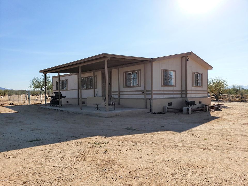 Sensational Updated 3 bedroom 2 bath Home & Horse Property nestled on over 4 acres w/Mountain views. Impressive fresh two-toned paint, new wood floors, ceiling fans, & open floor plan. Formal dining area, breakfast bar, & beautiful wood cabinets w/hardware. Extended backyard with vast land for the horses & desert oasis. Enjoy the great outdoors from your covered front and back porch.12'X12' Storage Shed and the Home has a block skirting.