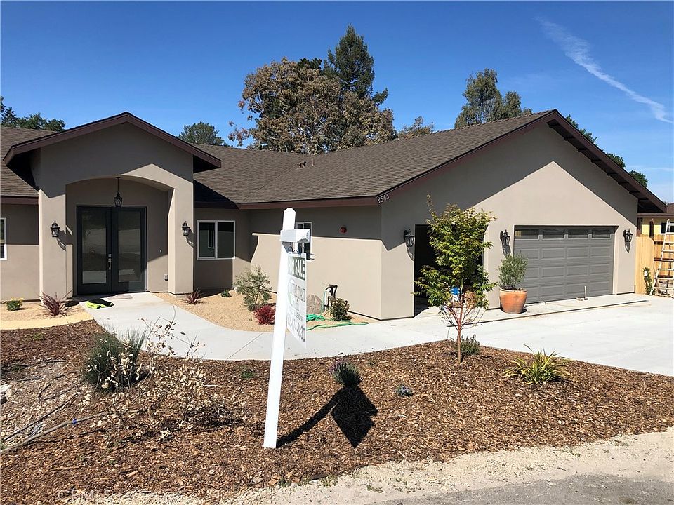 8565 & 8563 Atascadero Av: Two separate homes on one parcel. 0n a half acre located back off the city road on an exclusive cul-de-sac. 2 blocks from Atasc. lake. The main house is 2100 sq/ft, & 3 car garage & three bedroom two bath. The second home, (under construction, pick finishes) is a fully separate/detached ADU, with 1200 square-foot, 3bedrooms, 2 full baths, with full laundry room, attached two car garage, and its own large fenced yard, including massive covered patios. The main house is contractors own custom home with upgrades, built 2021. Both new homes include; open floor plan with high vaulted ceilings & 9 foot walls with an extra large custom kitchen, built-in pantry, island with full-size second sink and has upgraded stainless steel appliances. The main home also features columns, built-in shelving, & a corner fireplace, with three sets of French doors that offer access to separate concrete patios and open yards. The master suite has both a walk-in and additional standard closet. The master bath includes both an oversize soaking tub and separate walk-in shower; both bathrooms include double vanities. There is room for a garden, shop, & extra RV storage.