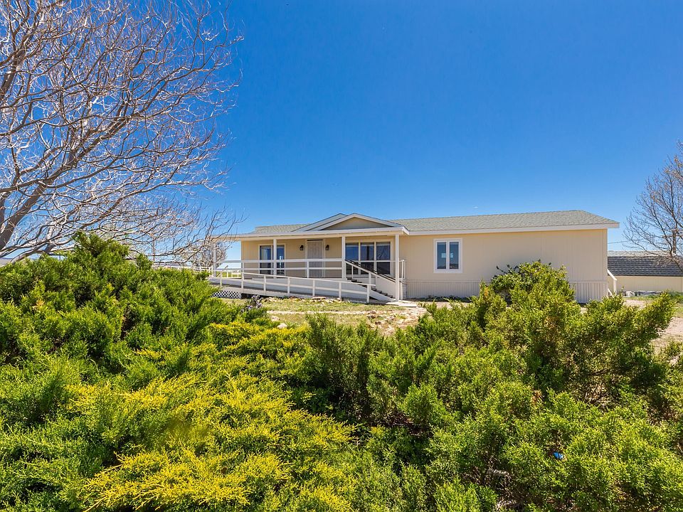 Next to AZ State Land with panoramic views from the wonderful decks! This spacious two bedroom, also has den that could be a third bedroom with the addition of a closest. The kitchen hasan island, built in desk, breakfast area with floor to ceiling windows, and storage galore! Formal dining is located just off the kitchen with superb views over the State Land. The largemaster has dual walk in closets with a huge master bath with his and her's vanities. The laundry room is well positioned in the home with plenty of room for a freezer and walk out door tothe back deck. The exterior has been freshly painted and the decks painted with special deck paint. Large newer storage shed, and smaller metal shed beside home for extra storage.