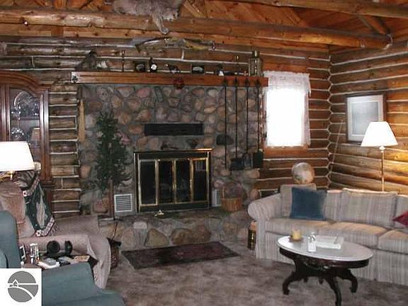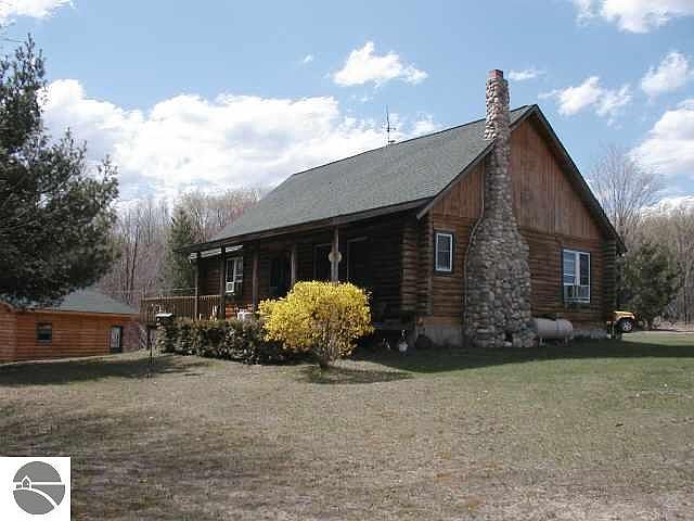 SECLUDED SETTING FOR YOUR LOG GETAWAY! Well maintained log home, covered porch, stone (gas) fireplace, cathedral ceilings, walkout basement, detached garage for cards or rv's! The perfect setting for seclusion, peace and quiet, near thousands of acres of State land and the Manistee River. A great getaway location! Mule deer head negotiable, home is wired for a backup generator, and so much more!