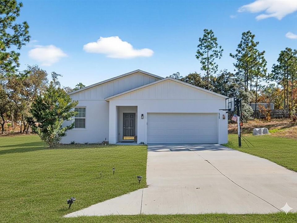 One or more photo(s) has been virtually staged. See a home that has gone from builder grade to UPGRADED and truly move-in ready. Starting with a stainless-steel refrigerator, washer, and dryer included. The primary bath features a new glass enclosure that frames the sleek tile walk-in shower. Outside, the exterior has been repainted with an upgraded finish, and the home includes several other thoughtful upgrades that enhance everyday living. Beyond the upgrades, the home opens into a bright, easy-flow living, dining, and kitchen space that works well for daily living and entertaining. The primary suite sits quietly at the back of the home, while the two front bedrooms gives you flexibility for either family, guests, work, or hobbies. Step out to the covered lanai with your morning coffee or an afternoon beverage and enjoy this quiet retreat. The nearly one-acre corner lot still carries much of the area’s natural Florida foliage, giving the property a more established feel than the typical cleared new-construction lots and allowing you to shape the outdoor space to fit your lifestyle. With key conveniences already in place, settling in is simple—everything is ready for the next owner to enjoy from day one.