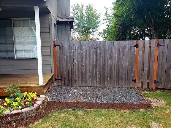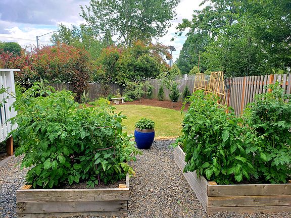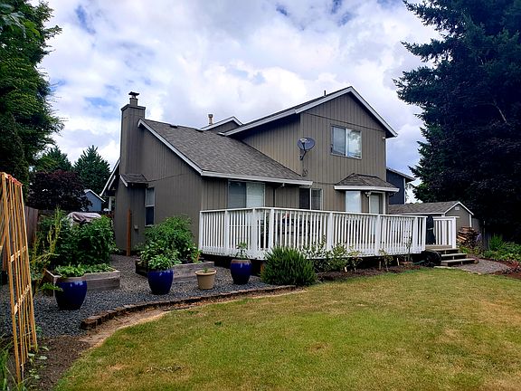 Attractive three bedroom and two and one-half bathroom home with modernizations, upgrades, and comforts throughout! Minutes to I-5, 217, and Bridgeport Village. Walking distance to Tigard High School and Cook Park. Located on the end of a cul-de-sac. Property features a generously sized lot with plenty of garden space, beautiful flowers and landscaping, privacy trees, and raised garden beds. Swing gates on both sides of the house open to boat or utility trailer parking. A matching 12x8 foot shed offers storage for all your gardening and home extras. Large back yard deck is great for barbecuing and sitting outside! On the inside, a family-friendly floorplan enters to vaulted ceilings, a cozy living room with a wood burning stove insert, and a dining room that has open access into your spacious kitchen. Granite counter tops in kitchen with breakfast bar, an informal dining nook that leads outside, and stainless-steel appliances in the kitchen to be included—refrigerator/freezer, oven/range, microwave, and dishwasher. Abundant kitchen counter space, plenty of cabinets, and sink disposal. High efficiency washer and dryer included in laundry room in half-bath downstairs. Laminate floors and new carpet throughout house. Master bedroom features a large walk in closet. Newly installed recessed LED lighting both downstairs and upstairs gives the home a modernly bright look! Central air conditioner and heater throughout house. Brand new water heater. This home is lovely and ready for you to make it your own.
