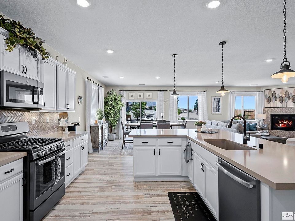 Step into this luxurious gourmet kitchen, featuring all the upgrades and modern designer finishes of a former model home. Featuring oversized island and breakfast bar, complete with elegant stone countertops and sleek white cabinets. The high-end GE Slate appliances add a touch of luxury. Enjoy numerous model home upgrades throughout, including stylish plank flooring and beautifully upgraded tile in the bathrooms. Situated on over 1/3 of an acre, the meticulously landscaped property is a true oasis., This home sits on a premium oversized lot with incredible mountain views including Peavine and the Sierra. Neighborhood features LMA (Landscape Management Association). Conveniently located with easy commuter access to Highway 395 and I-80. Buyer and Buyer's Agent to Verify All.