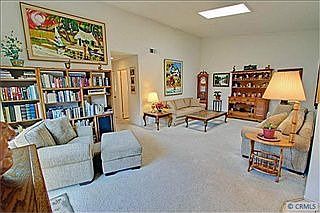 Fabulous location end unit, 3 bedroom 2 bath with great view of greenbelt and trees from kitchen window. Upgraded with newer dual pained windows, skylights & ceiling fan. Custom kitchen cabinets and master bath cabinets. Shows light and bright and large patio with retractable awning. Steps to garage and mail box. Extra parking close by. Multi million dollar club house, olympic pool and spa, billards room,gym, spa, pool, work out room, library, putting green, shuffle board, tennis courts etc. Located 1 mile to the beach. 24 hour guard gated community, adult community age 55+ required for 1 owner.
