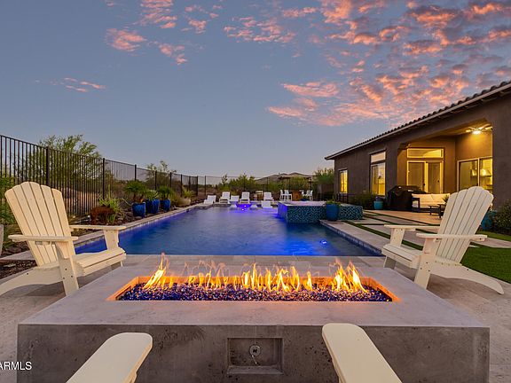 Step outside to the resort-like backyard, complete with a pool, negative edge spa, fire pit, & desert landscaping that frames breathtaking mountain views. Located just minutes from the shops and dining.