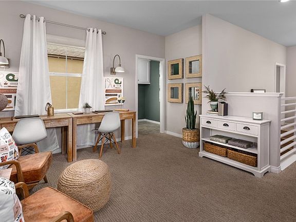 The home includes Pre-Selected Flooring: Luxury Vinyl Planks in Great Room, Dining Room, Kitchen, Bathrooms, Powder Room, Downstairs Bedroom, and Laundry Room. Carpet in Upstairs Bedrooms, Stairs, and Loft.