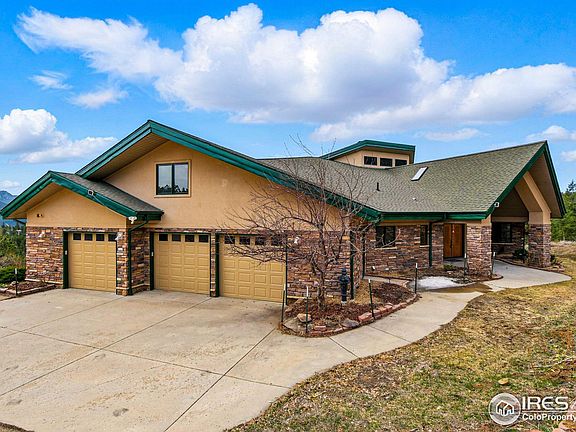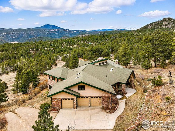 Spectacular 5,000 sq. ft. Mountain Retreat on 35 acres off Flagstaff Road with jaw-dropping views of Indian Peaks Wilderness, Eldorado Canyon, Gross Reservoir, and Thorodin Mountain. Massive windows with lots of natural light provide breathtaking views of mountains and wildlife. Beautiful entryway with tranquil koi pond welcomes you to a spacious and light-filled living room, dining room, and kitchen with vaulted ceilings, bamboo floors, and lovely stonework, including a statement fireplace. Entertainment possibilities abound inside the open floor plan with great flow as well as outside on the expansive deck - perfect for yoga or meditation retreats and large gatherings. Large primary suite with its own fireplace, five-piece bathroom with jetted tub, and dual, large walk-in closets. New interior paint, appliances, fixtures, and carpet. Additional bedrooms with en-suite bathrooms and panoramic views are perfect for family and guests. Lots of flexible space for storage, exercise, and home offices. The downstairs area with separate entrance has options for an in-law or au pair suite. Oversized heated three-car garage has massive storage rooms and a dog-washing station. Enjoy fully owned solar panels, radiant heated floors, and a separate entrance to a large insulated crawl space. This beautiful serene mountain setting only 20 minutes from downtown Boulder offers equestrian and recreation possibilities, including hiking at Walker Ranch and boating and fishing at Gross Reservoir. Welcome Home to this one-of-a-kind sanctuary!