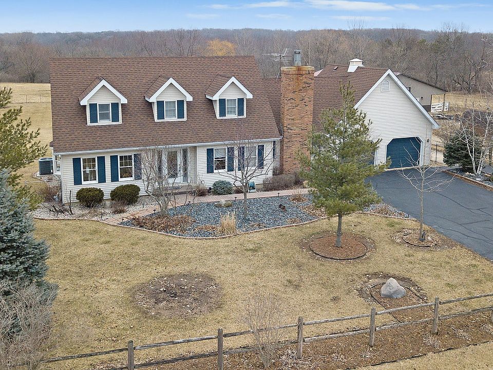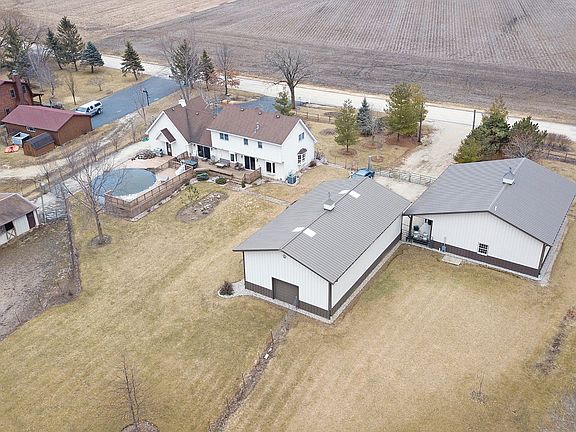 Cape cod style home sitting on 3.33 acres with a beautiful view of the countryside + two large pole barns and a horse barn! Two pasture areas are fenced. Finishing off the outside you have a new pool (2020)& large deck for your outdoor enjoyment. Let's walk inside to a main level that is been mostly remodeled with hickory kitchen cabinets that have pull out drawers & are quiet close, with granite counters & recessed lighting. SS appliances that feature a griddle, heat lamp & convection oven. Family room boasts a beautiful wood burning fireplace & a tongue & grove vaulted ceiling! Hardwood floors throughout main level. Also wired for surround sound. Some windows have been replaced. Home needs some finishing touches & some updating upstairs, perfect project! 2nd Parcel # is 05-18-151-002 & is not build-able. Two car garage is heated. Sizes of buildings are 20x30, 30x52, & 36x45 which has radiant heat in floors.