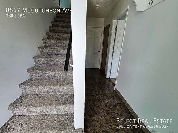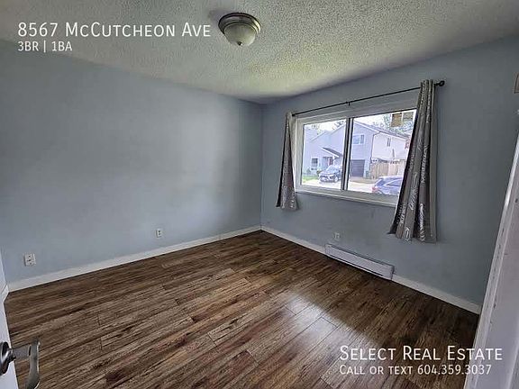 Address: 8567 McCutcheon Avenue, Chilliwack, BC V2P 7L3 Date Available: May 1st, 2025 Description Vibrant 3 bedroom upper unit of a lovely family home in a quiet, family oriented neighbourhood. Close to all levels of schooling, a park with playground in walking distance and a short drive to all shopping needs. On entering, you will find the landing, coat closet and one bright, good sized bedroom. The upper floor has the living/dining room/kitchen with area for bar stool seating. This leads into 2 bedrooms and the main bath. This unit has a shared, fully fenced backyard. The shed on site is for basement suite use. The garage contains the shared washer/ dryer and is used for storage. 1/2 of the garage is used for the basement tenants storage and 1/2 will be for upper unit. Lease Details Lease duration: 1 Year Deposit: Months Rent. Pet Deposit: Months Rent. No Smoking Property Details Bed: 3 Bath: 1 SQFT: 1000 Pet Details Pets(Yes/No): NO Type Allowed: N/A Number: 0 Size Restriction: None Exterior Details BBQs allowed(yes/no): Yes Parking type and how many: Driveway (1 Space) Yard Usage: Shared w/ Basement Tenants Yard fully fenced: Yes Shed Or Shop Usage: No Appliances Included Fridge: Yes Range: Yes Dishwasher: Yes Microwave: Yes Washer/Dryer: Yes Shared Laundry: Yes Pay Laundry: No Fireplace: Yes Air conditioner: No Standalone freezer: No Utilities Gas: None Hydro: 80% Tenant Internet/Cable: 100% Tenant Water, Sewer, Garbage: $50 per month Utility Type Heat Source: Electric Baseboards Septic/Sewer: Sewer Water Source: City Tenant Responsible for Septic pumping: No