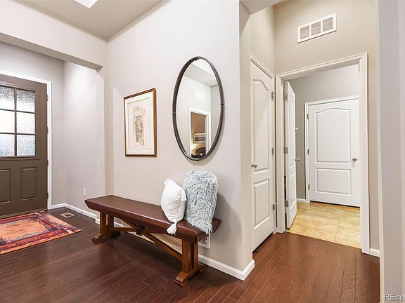 Main floor living doesn't get much better than this 3 bedroom 3 bathroom Ranch style home in beautiful NW Arvada and the picturesque community of Leyden Rock. This William Lyons home, built in 2014, has been meticulously cared for. Located next to Daybreak Park and backing to greenbelt space, you'll enjoy views of the mountains and park from your covered front porch. Step inside and enjoy the bright, open entry with tray ceilings. Two large front bedrooms are located of the entry, one with its own private full ensuite. An additional full bath is also located off the front foyer. You will enjoy the bright, open floor plan of the living, dining room and kitchen space overlooking the back deck and greenbelt. The spacious kitchen has a 4'2" clearance between the large granite island and counter/cabinet space, tons of cabinets, all stainless steel appliances and a induction cooktop. You'll enjoy entertaining in the dining and living room with upgraded recessed lighting, gas fireplace and surround sound. The Primary Suite is oversized with tray ceiling and has large windows to let in the light and views of the greenbelt. Escape the Day in the Primary en-suite with oversized shower (upgraded shower door), dual sinks with quartz counters and large, walk-in closet. The Primary closet is also connected with the spacious laundry room for your convenience. Enjoy Colorado living at its finest with the rural beauty of this pristine area, where over 60% of the land is open space, including 17 miles of trails that interconnect with a comprehensive regional trail and open space system. The community offers neighborhood parks, a community pool, clubhouse, and tons of activities. *Additional pictures, video, 3D tour and floor plans available* Additional square footage is available via the full sized, unfinished basement waiting for your personal touch.