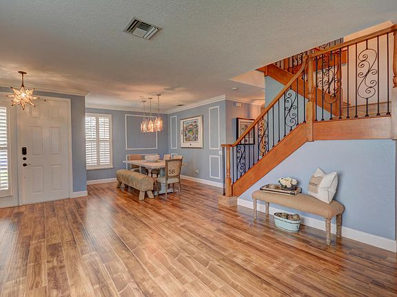 Impeccably decorated 5 bedroom, 3 bath, 3 car garage, Amber model located in Canyon Lakes. Upgraded chef's kitchen includes granite countertops, designer tiled backsplash, 42'' custom cabinets, stainless steel appliances, snack bar and family dining area. Master retreat with a sitting area, tray ceiling, his and her walk in closets, dual sinks, walk in shower and garden tub. Oversized covered patio overlooks the private fenced yard with a stunning lake view. This home also features formal living and dining rooms, plantation shutters, crown molding, high hat lighting and a iron wrought staircase. Canyon Lakes boasts first class amenities that include a club house, fitness center, resort style pool, children's water play area, tennis, basketball and play areas. MOVE IN READY