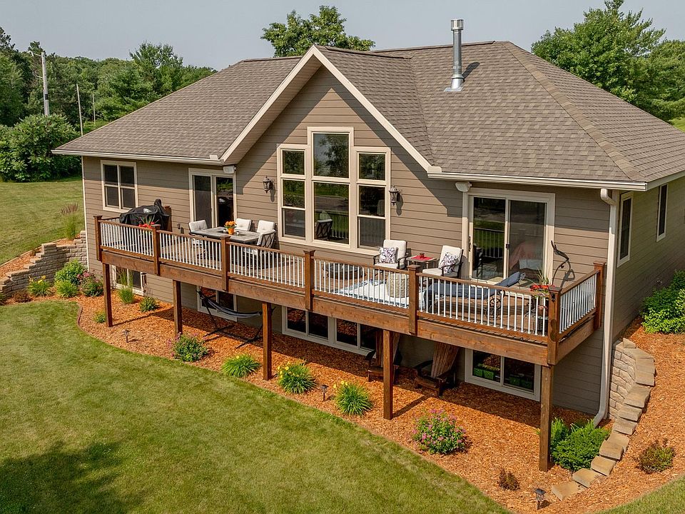 Imagine waking up with an incredible sunrise over beautiful South Long Lake with sunshine beaming in the house on your private 1.9 acres of land. This custom built 4-bedroom, 3-bathroom home also includes a bonus exercise or office space. The primary main floor bedroom offers lots of space and your very own private bathroom with jetted tub and walk-in closet. The open living room offers a great place to gather with friends and family by the gas fireplace. More room in the spacious family room in the lower level is perfect for relaxing or entertaining. Plus, enjoy the 3 honey-crips apple trees right in your backyard as well as the rhubarb plants in the high-fenced garden! Boating, fishing, skiing, tubing right out the door awaits the next lucky owner.