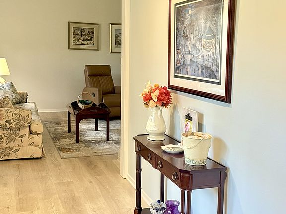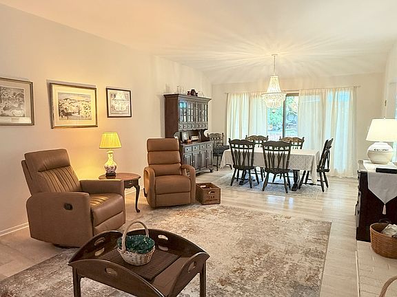 Step into this beautifully updated, furnished duplex in the highly sought-after Hilltop area of Heritage Village. Ideal for a short-term renter, this 55+ community home offers a comfortable and convenient lifestyle with no stairs to worry about. Inside, you'll find a spacious and airy living/dining area that opens directly onto a private, plant-filled patio perfect for relaxing. The home is designed for easy living with luxury plank flooring throughout. The bright, eat-in kitchen is a true highlight, featuring beautiful quartz counters, stainless steel appliances, and plenty of storage. The large master bedroom offers dual closets and a private en-suite bathroom. An additional bedroom can serve as a guest room or den, and a second updated bathroom is also included. The detached garage and additional guest parking provide easy, level access. As a resident, you'll enjoy all the amenities Heritage Village has to offer, from a state-of-the-art fitness center and multiple pools to tennis and pickleball courts. Take part in the many clubs and social activities available. This home is also conveniently located near shopping, golf, and I-84, making it easy to get wherever you need to go. Duration: November-June (Negotiable) - NO pets, NO smoking. Electric $350.00 due each month to be paid with rent to landlord. Water $35.00 monthly to be paid to landlord. Tenant insurance required,1st month rent +one month's security due at lease signing. Renters to provide their own bedding and towels