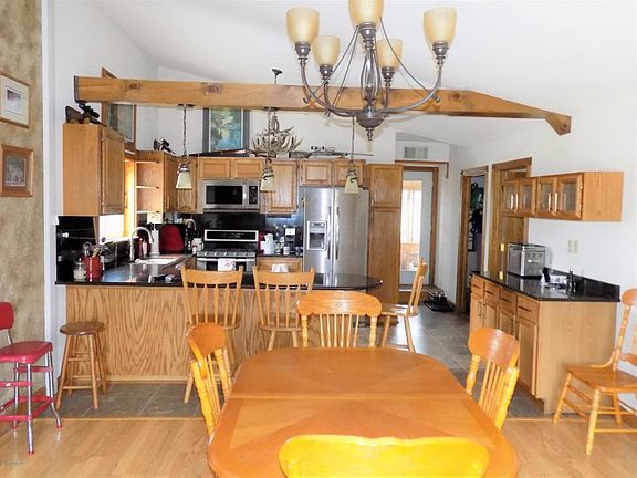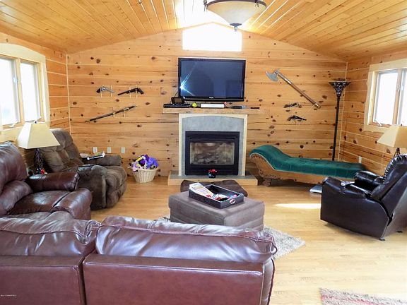37+ Acres just 1/2 mile from town. 1,567 SF home offering 2 bedrooms, 2 baths. Central air, gas fireplace, tongue & groove interior, vaulted ceilings, ceiling fans. 3 season porch, concrete patio off the living room. Large garden, trails, fish pond with fish and a wildlife pond. Detached 2 stall garage, storage sheds.