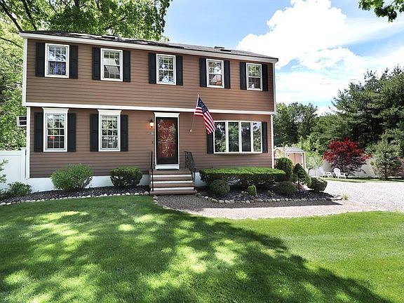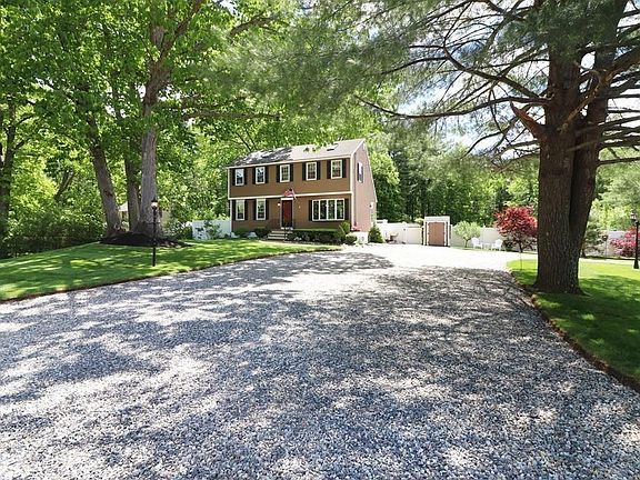 Beautifully renovated Colonial situated on an acre of pristine grounds offers privacy in a nice country setting. The entry welcomes you to the first floor which features an oversized living room with sliding glass door to the large rear deck. Antique barn beam ceiling, Tuscan dining room with a custom stone wine wall, and center island kitchen with plenty of cabinets. Makes great space for hosting fabulous dinner parties or holiday gatherings. The stairwell leads to two large bedrooms with skylights, two additional bedrooms, and a full bath. Gorgeous crown molding in every room of the house. Waterproof basement with laundry and walk out and a large walk-up attic perfect for storage. Private backyard with lush lawn, landscaped, trees, and shrubs with wooded border. The property also offers two sheds, bbq patio, new swing set playground, and organic herb/vegetable garden. These are just some of the details of this superb home that is a must-see! Close to highways, beaches & trails.