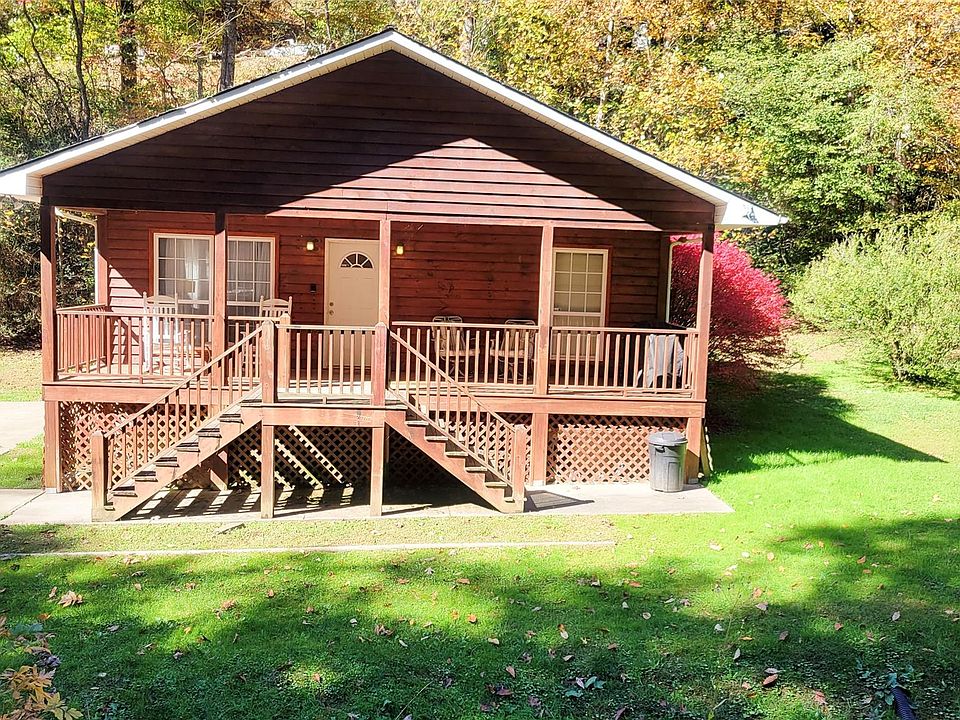 Nestled in the charming Deep Creek area, this vacation rental, just 2.1 miles from the Great Smokies National Park, seamlessly blends tranquility with nature's beauty. The flat yard, with a babbling brook, creates a serene backdrop. Enjoy the covered front porch or private rear deck for peaceful moments. The home features 2 bedrooms, 2 baths, vaulted tongue-n-groove ceilings, and walls for an inviting atmosphere. The large primary suite has a walk-in closet and ensuite bath. The updated kitchen, with stainless steel appliances and a breakfast bar, is a culinary haven. Fully furnished, this property embodies mountain living—comfort and natural beauty. Capture the essence of Deep Creek living!