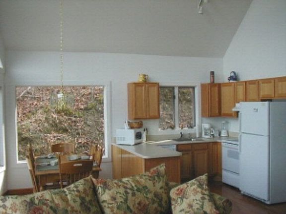 Chalet-style three bedroom, two bath cabin on 5.4 private wooded acres in a gated community. Wrap-around deck with views of two states, including Clingmans Dome, Tennessees highest peak. Raised hot tub deck built into the side of the mountain with birds-eye view of mountains. Spring head on acreage builds into a small stream and waterfall. Close to mountain biking at Tsali, white-water rafting, tubing, Great Smokey Mountain National Park, boating, and fishing on Lake Fontana. Currently in vacation rental program and sold completely furnished. A private mountain estate. Motivated Seller!!!