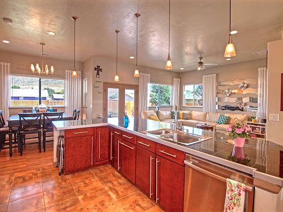 Live in Historic Palisade Wine & Peach Country!!! This Custom residence was designed & built specifically to incorporate the spectacular views of the both the Grand Mesa and Mt. Garfield and is a true standout in the Wine Valley Estates subdivision. Upgrades abound from the moment you enter the home! The extra large kitchen will make your eyes sparkle and there is room for all your guests around the large island with beautiful pendant lighting! Enjoy your conversations in either the open living room or the family room that share a gorgeous dual-sided natural gas fireplace. The owners-suite's bath offers an over sized shower, rainfall shower head, custom dual vanities, & separate office or flex area! Secondary rooms have unique loft-over walk-in closets that are truly amazing! The exterior is ready for your summer BBQ’s with a firepit area, raised garden beds, & gated RV Parking too!