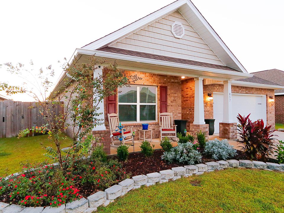 CURRENTLY UNDER CONTRACT SELLER WILL CONSIDER BACK UP OFFERS - This stunning 4-bedroom, 2-bath brick home is located in the highly sought-after Andrews Plantation neighborhood. This home boasts an open concept with split bedrooms, offering plenty of room for entertaining. The common areas are adorned with stylish vinyl plank flooring, designer lighting, and granite countertops in both the kitchen and bathrooms. The kitchen, complete with a central island, flows seamlessly into the large, light-filled great room, creating an airy and inviting atmosphere. Step outside to the covered back porch, which includes privacy shades—perfect for relaxing. The master suite, situated at the rear of the home, features a luxurious bathroom with a walk-in shower, garden tub, and a generously sized walk-in closet. Andrews Plantation is a peaceful community conveniently located near charter schools, shopping, dining, and just a short drive from Tyndall Air Force Base. Schedule your showing today!