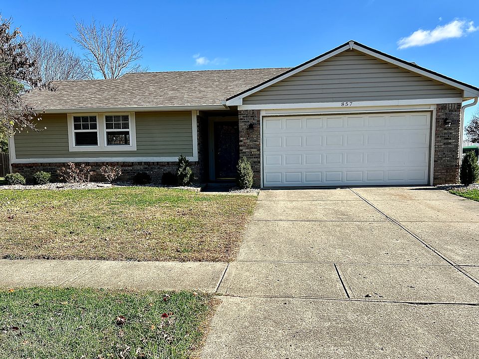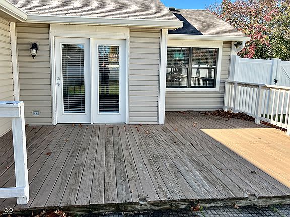 Check out this beautiful 3 bedroom, 2 full bath home and 2 car garage with big backyard surrounded by new white vinyl privacy fence (2023). This open space is perfect for enjoying family and pets on the big wood deck, play-set or create a garden near the mini barn. Fully remodeled kitchen (2020) features large center island with breakfast bar, all stainless steel appliances, white subway tile backsplash, open shelves, lots of counter and cabinet space. This wide open concept floor plan has spacious Dining and Great Room area with laminate flooring throughout. Primary bedroom suite with large vanity, tub/shower and walk-in closet. Flex room used as office with included washer and dryer in the closet. New Roof in October of 2024 and new Water Heater in 2021. Home is move in ready in Greenwood Schools. Centrally located between I-69 and I-65 for convenient access in all directions.