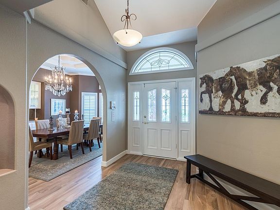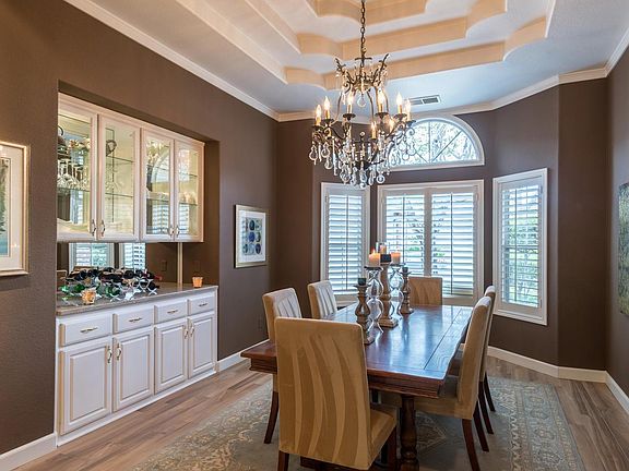 Amazing single story Custom Gerimel built home within Northpointe Circle of desirable Woodward Lake! Situated on an optimum large North/South Facing tree studded lot, this gorgeous updated home with tile roof has lots of upgrades to include newer wood plank tile flooring throughout entry, kitchen, Nook, Great Room, Formal Dining Room, laundry & isolated 4th bedroom/bath!! Large Gourmet granite kitchen features Stainless Steel Wolf Gas Range & hood, large walk-in pantry, lots of bar stool seating area & is open to Great Room, nook & has beautiful views of the spacious & lush backyard with pool and above-ground spa. Stunning herringbone brick fireplace is the focal point of the Great Room and is framed by built in bookcases on either side. Isolated bedroom has 160+bottle Vinotemp Wine Cooler in former closet area, which is included without warranty. Large Master Suite w/two separate walk-in closets. Tandem 3-Car Garage. Award winning Clovis Schools & close to bike trail & Woodward Park!!