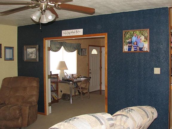 Tucked at the end of the lane.. great family home ! Newer appliances in a spacious country kitchen with garden window, beautiful tile work and loads of cabinets. Living room plus adjoining Family Room or den! Warm decorator colors, laminate floors. New energy efficient windows throughout!! Large Detached Workshop building. Lattice covered brick patio. New Metal Roof! 1.2 acres with mature trees, fenced yard, bring the kids, bring the horses and chickens!!