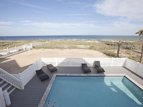 Absolutely stunning ocean-front home in Kure Beach. Huge home has 7 bedrooms and 6 full baths. This vacation home is a rental machine - there will be 150,000 in gross rents for 2017! In-ground pool and hot tub. Loads of deck space. 73 foot wide lot. Open floor plan. Kitchen has new white cabinets and granite tops have been ordered, island with bar seating. Living room has a gas log fireplace. Spacious deck off the living room for outdoor entertainment. Master bedroom is on the third floor and outstanding ocean views. There is an office and a den. Ground level has 2 bedrooms along with a massive game room with lots of table games. This turn key property comes completely furnished.