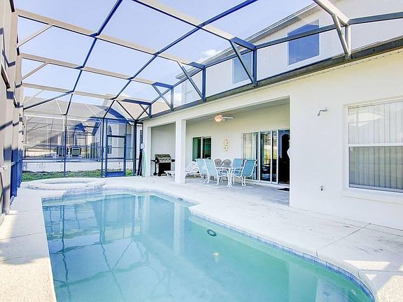 Welcome to our beautiful home from home. Our luxury five bedroom two storey home boasts three master bedrooms one of which is a full disabled en-suite wet room, which includes a shower chair. Situated on the very exclusive Highgate Park, the only gated community on Legacy Park, with a south facing extended pool deck, spa and Lanai to enjoy the sun, while being close to all the fun and entertainment that Florida has to offer. Security The villa is alarmed throughout with key codes for access to the gated community. Our luxury villa boasts over 2,600 square feet of living space comprising of: 2 living areas, one sitting room to the front of the house, ideal for some quiet time and a family room with a 9'5" vaulted ceiling to the back of the property with access to the pool through double doors. 2 dining areas, 1 formal and 1 nook overlooking the pool area Kitchen in black granite with a breakfast bar Extended pool deck with pool and spa lounges, table and chairs for al fresco dining Well equipped games room including 7ft pool table, foosball, air hockey and electronic darts Wi-Fi Travel Cot, Highchair and stroller Villa Comfortably sleeps up to 12 Completely professionally refurbished to highest standards in 2015 Upstairs comprises of the master suite which has a king bed, quality furnishings and a large en-suite with bath tub, shower, twin sinks and closet. There are two further bedrooms (both twin rooms) to the other side and these share the fourth bathroom, with a games area situated just off the galleried landing. Downstairs in the open plan family area you will find the fully equipped kitchen which is a black and white with granite worktops and breakfast bar, with a nook which looks out over the pool. There is a large cable TV in the family room and WI-FI throughout so that you can keep in touch with loved ones at home. There is an additional w/c downstairs, just off the lounge. The sitting room which is ideal for those quiet times when you fancy a bit of peace and time out, is furnished to the highest standards and a beautiful place to take five minutes away from the rest of the house. There are two further master bedrooms downstairs, one double with en-suite with direct access to the pool area, the other, a twin room with full disabled wet room which includes a shower chair. All bedrooms have flat screened TV with cable. Additional sleeping for two people can be found in the lounge where one of the sofas in the family room becomes a double bed. All towels and bed linen are provided and there is a washing machine, tumble dryer, iron and ironing board for your convenience. In the bathrooms of the Master Bedrooms you will find Hair Straighteners and travel plugs to assist you in your stay. There is air conditioning throughout, as well as ceiling fans for additional comfort if needed, also a telephone which provides free local calls. Sorry no pets The villa is conveniently situated close to Disney World, local amenities as well as the other many local Florida attractions. There are supermarkets close by such as Publix and Walmart, as well as Pharmacies Walgreens and CVS. Within a short distance you will find a large selection of restaurants, take-aways and diners. Owner pay trash and sewer, tenant is reposonsible for utility