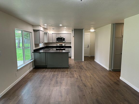 Complete remodel just completed. New exterior siding, windows, paint, and garage doors. New garage door openers and HVAC. Inside all new bathrooms and kitchen, with stainless steel appliances. New interior paint, flooring, switches, outlets, lighting fixtures and more. This is a HUGE lot with zoning potential to split, check with the city. Or plenty of space for shop, pool, pitch or putting coarse and more. Parking for any size RV. Must see!