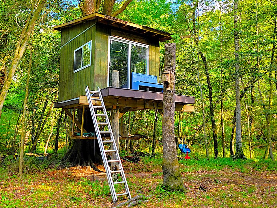 • Elevated ''tree house'' style hunting cabin with bunk beds, a propane stove, and a wrap-around deck—perfect for day hunts or overnight stays