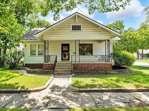 Charming Riverside Bungalow on a Corner Lot! Welcome to this adorable 2-bedroom, 1-bath home nestled in the heart of the highly sought-after Riverside neighborhood. From the moment you arrive, you’ll fall in love with the curb appeal—mature shade trees, a spacious corner lot, and a freshly painted exterior trim that gives this home a crisp, inviting look. Inside, you'll find a warm and welcoming atmosphere with rich wood floors that flow through the large living room and formal dining room. Oversized windows let in an abundance of natural light, creating a bright and airy feel throughout the home. The kitchen is both functional and charming, with all appliances included—making move-in a breeze. Step outside to enjoy your own private backyard retreat, complete with a cozy patio that’s perfect for morning coffee, evening relaxation, or entertaining friends. The detached 2-car garage offers plenty of space for vehicles, hobbies, or additional storage. The basement provides laundry hookups and additional space for storage or future finishing. Whether you're a first-time homebuyer, downsizing, or looking for a great investment, this home offers classic Riverside character with modern convenience. Don't miss your chance to own a piece of one of Wichita’s most charming neighborhoods!