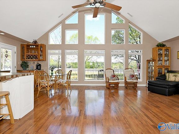 Step inside this meticulously custom built one owner home. The interior spans across 1,142 sqft, making use of the area to create an inviting atmosphere. The living room, with its soaring ceilings and two story windows not only adds a sense of grandeur but also enhances the natural light that floods the space, creating a warm and welcoming environment. Sitting on a one-acre lot, boost remarkable views of the Tennessee River providing a scenic picturesque lifestyle. Open kitchen floor plan with large island for entertaining. Roof is 2004 ,Hvac 2024 and water heater 2022. Minutes away from shopping and dining in Huntsville.