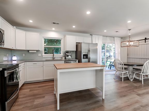 This beautiful ranch home has all the modern touches you are looking for in a home. It was fully renovated by the previous owner in 2018/2019 and is truly move-in ready. The one-story home features an open concept floor plan with luxury vinyl flooring throughout and a light-filled living room and kitchen/dining area that boasts quartz counters, stainless appliances, and ample cabinet space. The spacious owner's suite has a walk-in closet and en suite bathroom with a tiled shower and dual vanities. There are two guest rooms in the home, opposite the owner's suite, along with a second full bath. The large, fenced-in, corner lot has many mature trees and a deck, making it private and a great place to entertain. Convenient location close to Whole Foods, Avondale, downtown Charleston & beaches