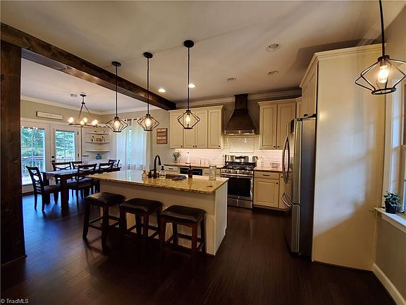 Remarkable Modern Farmhouse on nearly two acres in Advance offering privacy and a pond view with No Restrictions! This was the builder's personal home and is packed with upgrades. Enjoy more space and lower taxes without sacrificing convenience just over the county line. Only minutes from the new Davie Medical Center, which is surrounded by grocery and dining options. Three large rooms plus a Bonus Room. Spacious basement offering even more potential. Check out this Master Bath! Garden space out back.