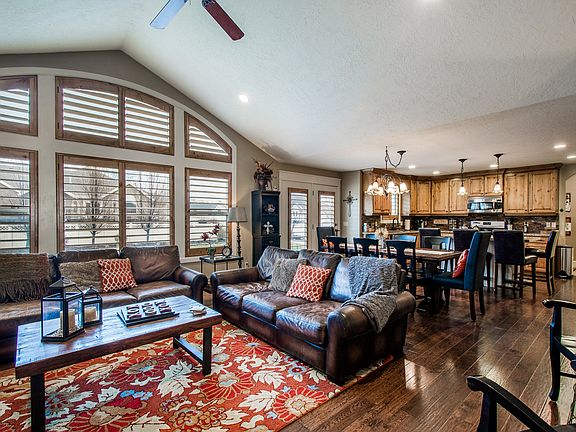 Chic rustic design meets timeless beauty! A rare find custom rambler with amazing 2 bed/full bath loft! Exquisite attention to detail *Knotty Alder Cabinetry*Gorgeous Granite*Upgraded Plantation Shutters*Wainscoting Accents Throughout*Rich Hardwood Floors*Porcelain Tile*Travertine*Great Storage + Cold Storage*Main Floor Laundry*Mud Room*the list goes on and on! West facing to enjoy afternoon shade & evenings on the patio. Excluded: Washer/Dryer, Refrigerator, Master Drapes, Basketball Hoop