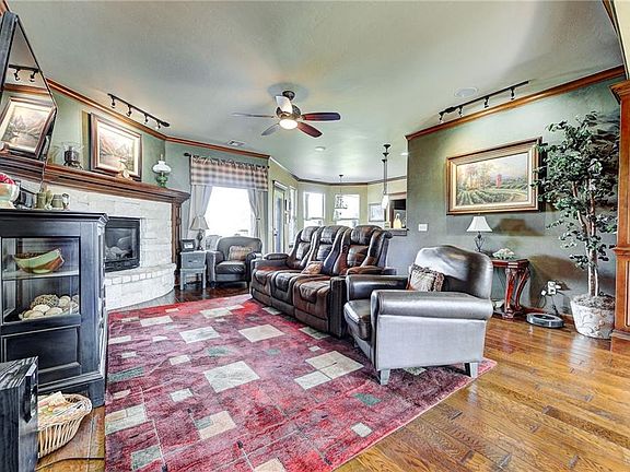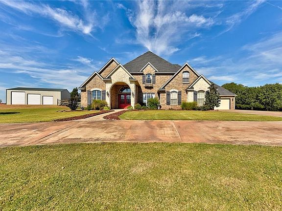 Stunning custom built one owner home with 3385 SF and incredible views on 10.52 acres. Enter through a private electric gate to a beautiful tree lined drive, home has fantastic curb appeal. Entertain family and friends with a sparkling pool, game room with wet bar, covered outdoor patio and deck, theater room with large screen projector. In addition, the home features 5 bedrooms (2 downstairs), 4.5 bathrooms, a 3 car garage, grand entry with beautiful stairway, tile and hardwood floors, unique wine closet, office, large master suite with Jetted tub, walk in shower, walk in closet, and an entry to covered patio to dream backyard. The outside has as much to offer as the inside, complete with pool, spa, waterfall, fire pit, pool house with water closet, shower, in ground storm shelter, outdoor kitchen with gas grill, large bar, and sink. Plus, a large 40 x 50 barn with 3 overhead doors and a 10 x 12 garden shed. Bring the toys and come to play.