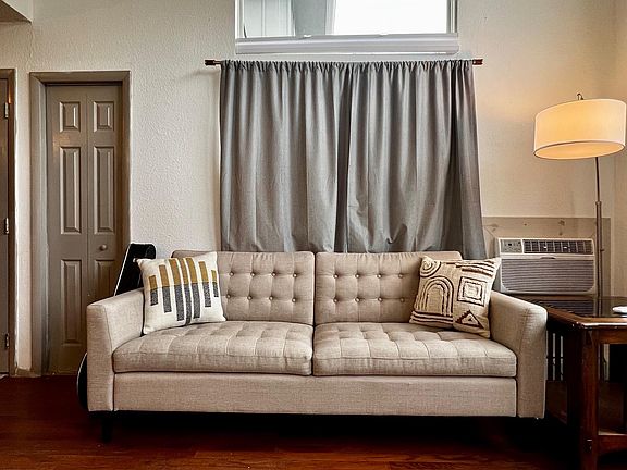 All utilities are included in rent (electricity, water, sewage, trash, internet). Dogs are welcome ($75/month for large dogs; $50/month for dogs under 50lbs.). No smoking, of any kind, indoors. While there's no reserved parking in the lot, there are always (seriously, without exception) spaces available, and no limit to how many vehicles can park there.