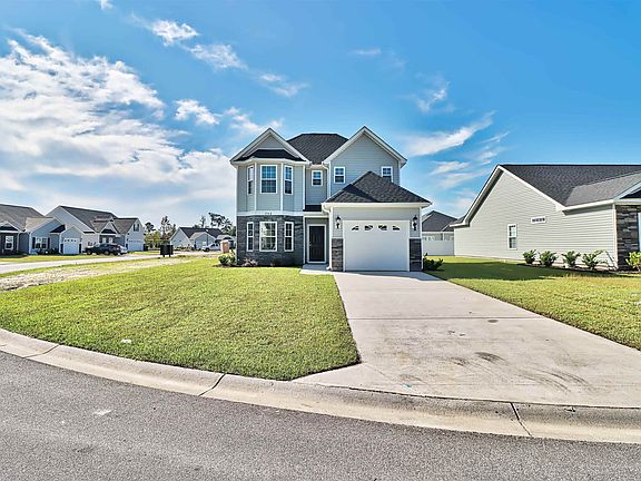 Don't miss this opportunity! New home! Move in ready! Great location with corner lot off of Highway 90 with easy access to the beach, shopping, restaurants, hospitals, Highway 501, and Highway 22! Custom-built home by local builder! Upgrades throughout including master bedroom on 1st floor featuring trey ceiling and master bath includes stand up shower and garden tub, three bedrooms with bath on the second floor, 1/2 bath on the 1st floor, granite countertops in the kitchen, custom moldings, irrigation system, front porch, and stone accents. Corner lot with rear bordering common area. All measurements and square footages are approximate and not guaranteed (to be verified by the buyer and/or buyer's agent). Pictures are of a similar model in another location.